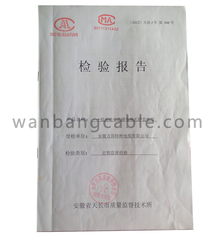 图片名称:检验报告-一般用途单芯硬导体无护套电缆 所属企业:特种电缆-安徽万邦特种电缆有限公司专业特种电缆生产商 更新时间:2013.12.06 浏览次数: